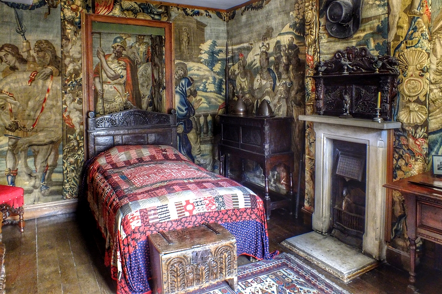 Chavenage: Schlafzimmer mit Gobelins des 17. Jahrhunderts ...