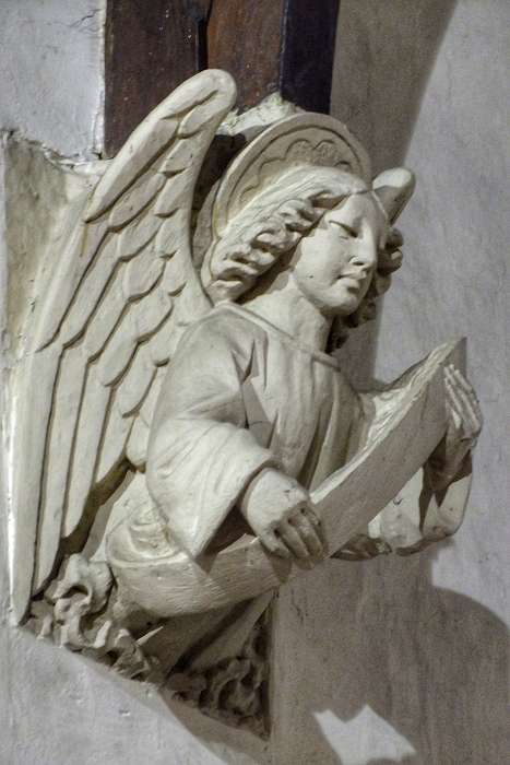 Engel tragen das Balkendach der Kirche von Kingham (19. Jahrhundert) ...