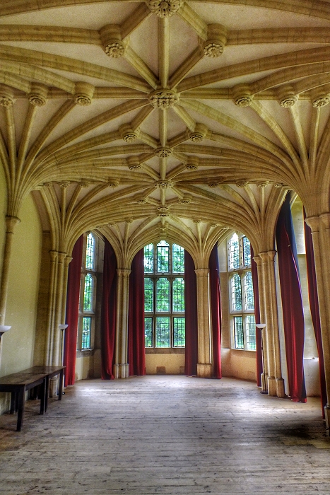 Die Bibliothek mit ihrem neugotischen Fächergewölbe ist der einzige Raum von Woodchester Mansion, der fertiggestellt wurde ...