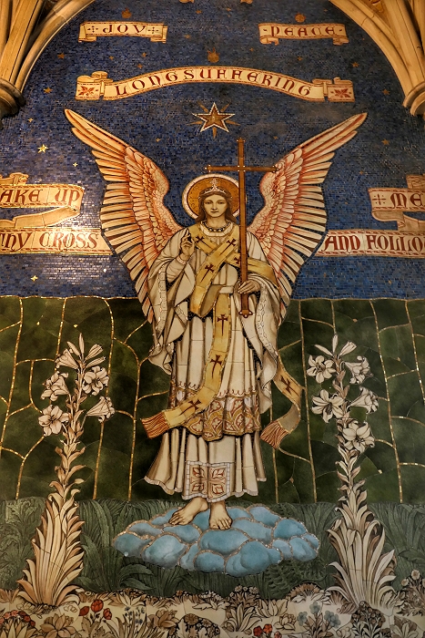 Die Wanddekoration der Taufkapeklle in der Kirche von Owlpen ist eine Kombination aus Mosaik und Malerei ...