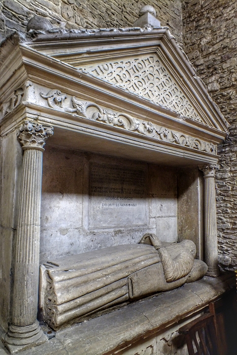 Grabmal für George Tompson, einen Wohltäter der Stadt, aus dem Jahre 1603 im Querschiff der Pfarrkirche von Bampton ...