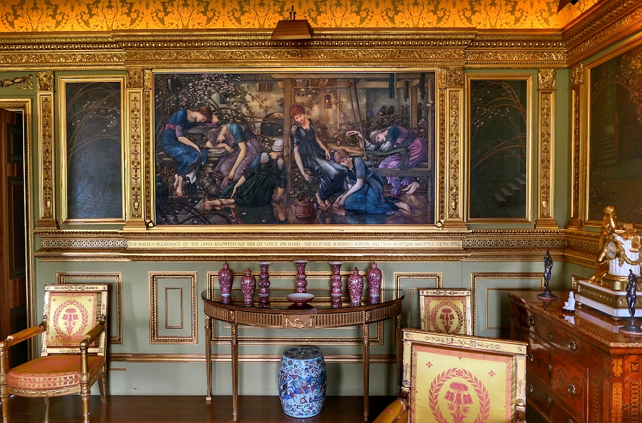 Gemälde aus dem Bilderzyklus 'Die Legende der Dornenrose' im Salon von Buscot Park ...