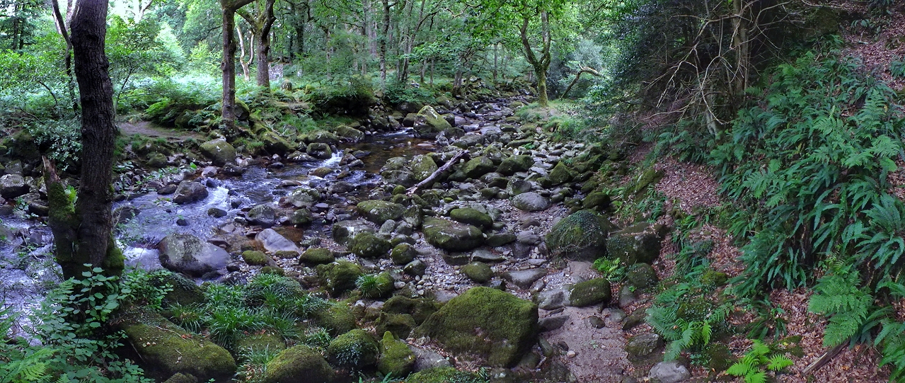 Dewerstone Wood und River Plym bei Shaugh Prior ...