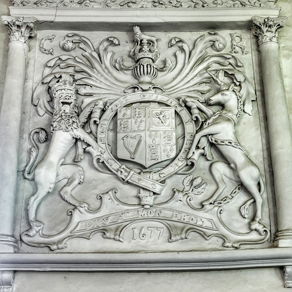 Wappen König Karls II. in der Pfarrkirche Sts Mary and Gregory, Frithelstock ...