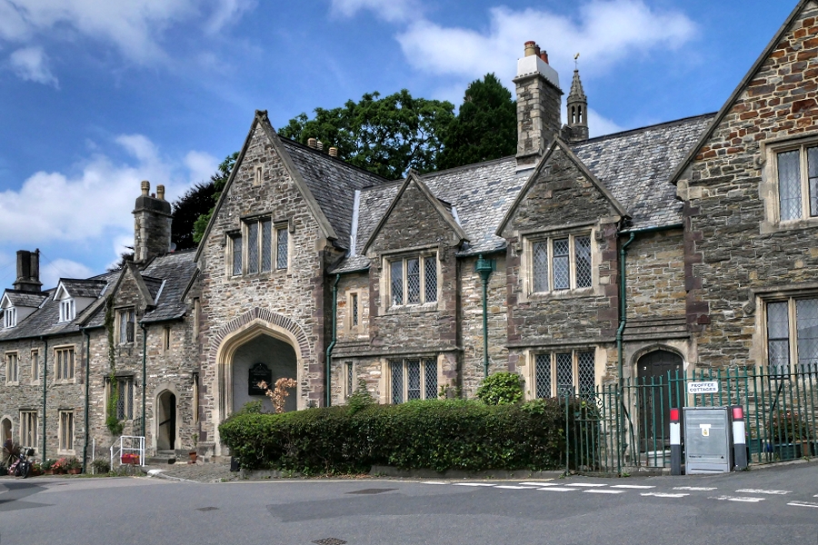 Die Almshouses St Mary's in Pilton, einem Vorort von Barnstaple, wurden 1849 in einem Pseudo-Tudorstil errichtet ...