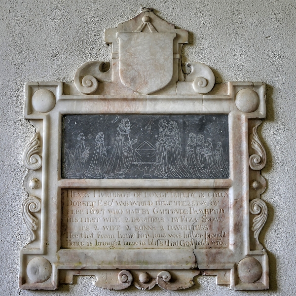 St George's, Monkleigh: Epitaph für Henry Hurdinge Esq. aus Longe Breedy in Dorset (+1627) sowie seine beiden Frauen Gertrude Bampfyld und Elsa Snowe, mit denen er insgesamt 2 Söhne und 4 Töchter hatte ... | |