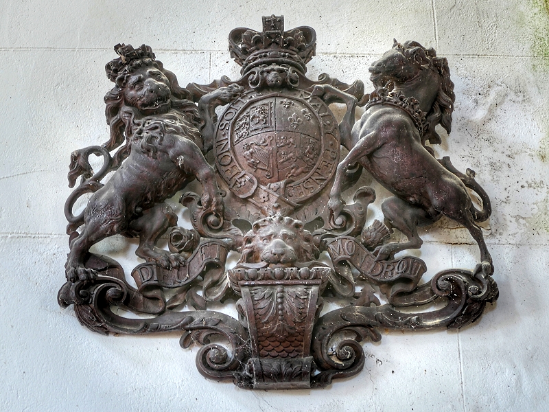 Geschnitztes königliches Wappen in der Kirche St Mary's, East Raynham ...