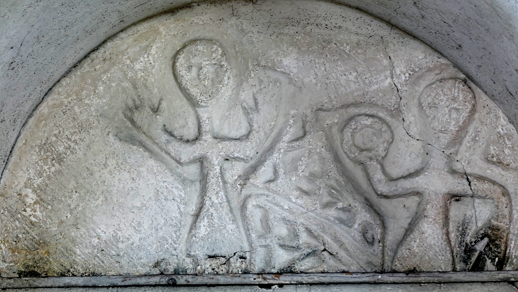 All Saints Wordwell: normannisches Tympanon mit einer Darstellung von Adam und Eva am Baum des Lebens ...