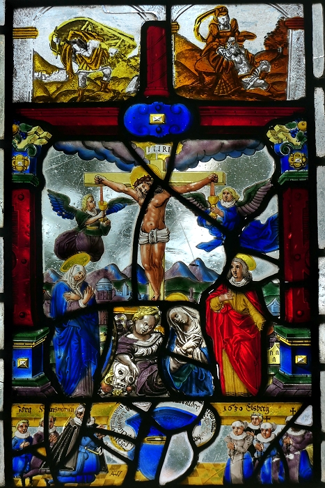 Reste von mittelalterlichem Glas in der Kirche Hawstead All Saints ...