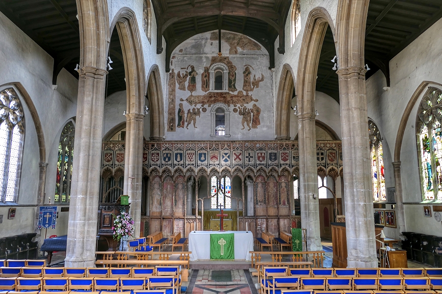 Beim Betreten der Kirche St Mary's in Attleborough fällt der Blick unmittelbar auf die Chorschranke, die sich über die gesamte Breite der Kirchenschiffs erstreckt ... | |