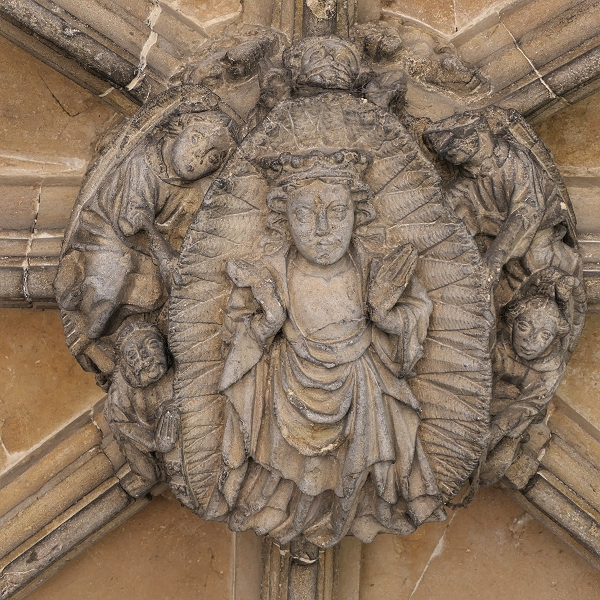 Die Schlusssteine in der Vorhalle des Südportals von St Peter's gehören zu den schnönsten der Grafschaft Norfolk ...