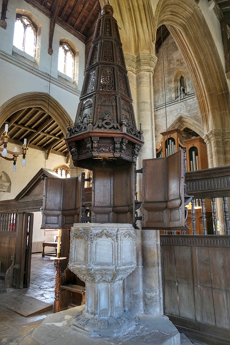 St Peter's, Walpole St Peter: Taufbrunnen von 1537 mit einer Haube des 17. Jahrhunderts ...