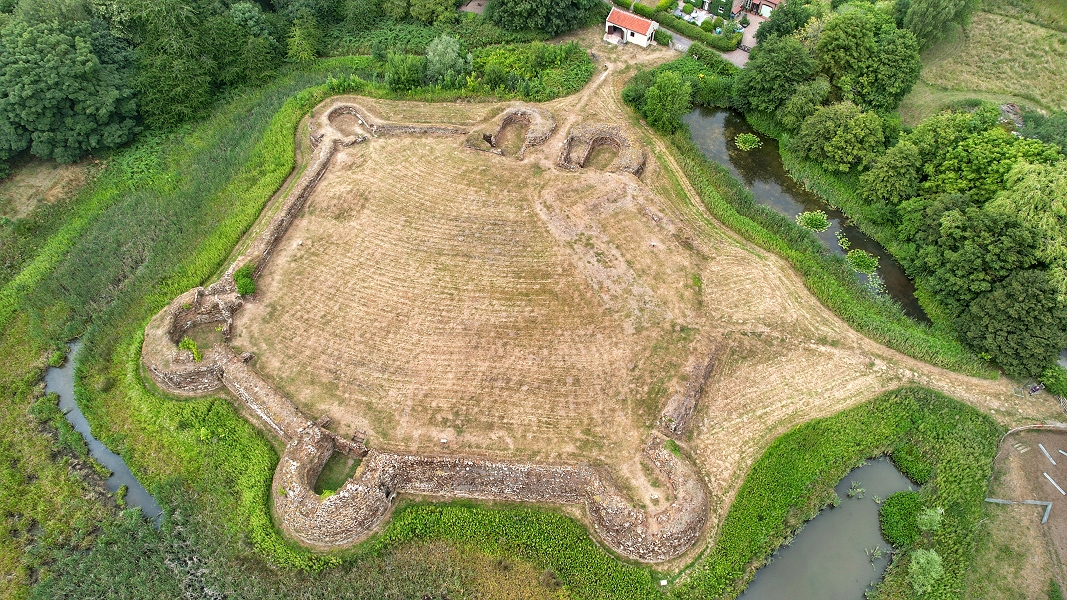 Aus der Luft ist die Konzeption der Anlage von Bolingbroke Castle noch gut erkennbar ...
