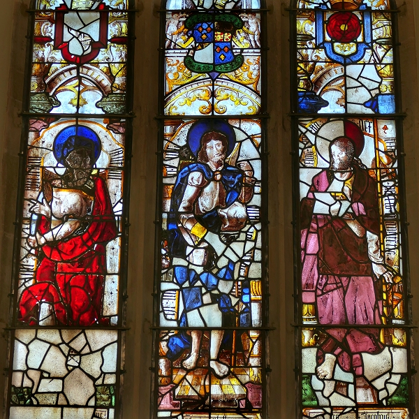 Withcote Chapel: Fenster von ca. 1530, die Galyon Home (+1552) aus Brügge zugeschrieben werden, der für Heinrich VIII. in Hampton Court und darüber hinaus auch in Eton, Westminster und Windsor Castle tätig war ... | |