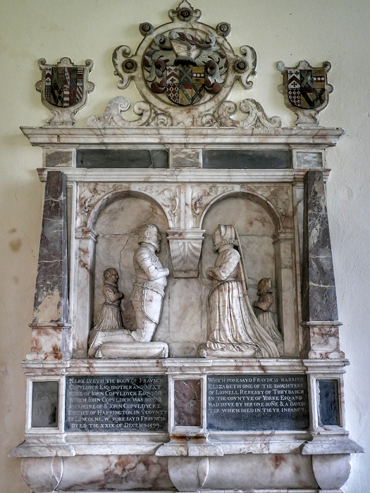 St Mary's, Harrington (Lincs.): Grabmal für Francis Copuldyck Esq. (+1599) und seine Frau Elizabeth Reresby sowie für einen Sohn und eine Tochter, die bereits im Kindesalter starben ...