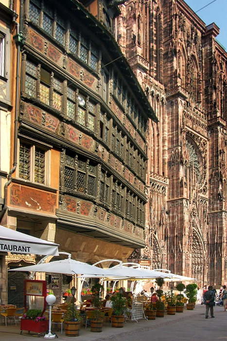 Eines der schönsten Fachwerkhäuser in Straßburg ist das gleich neben der Kathedrale gelegene Maison Kammerzell aus dem 16. Jahrhundert ...