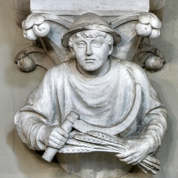 In der Halle von Knightshayes werden die Kragsteine, auf denen das Balkendach ruht, von figürlichen Darstellungen gestützt ...