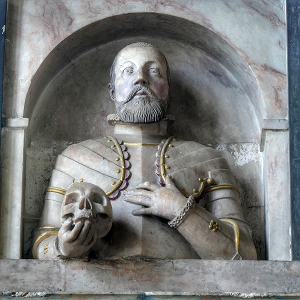 St Mary the Virgin, Goudhurst, Culpeper Grabmal: Büste von Sir Thomas Culpeper (1514-58), Sheriff unter Edward VI. ...