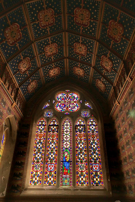 Pugin entwarf die Wanddekoration für die Drummond-Familienkapelle und ließ die von ihm entworfenen Fenster von William Wailes (1808-81), einem seiner Lieblingshersteller, anfertigen ...