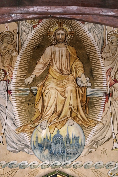 In der Spitze des Chorbogens thront Christus als Herr der Welt. Eine