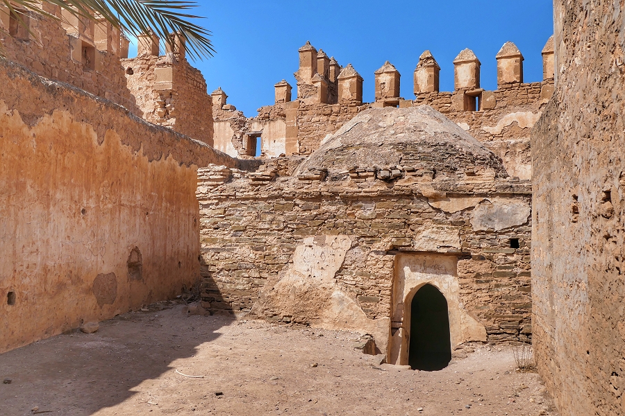 Neben der Moschee der Kasbah Boulaouane liegt die teilweise verfallene Koubba eines frommen Mannes names Sidi Mansour ...