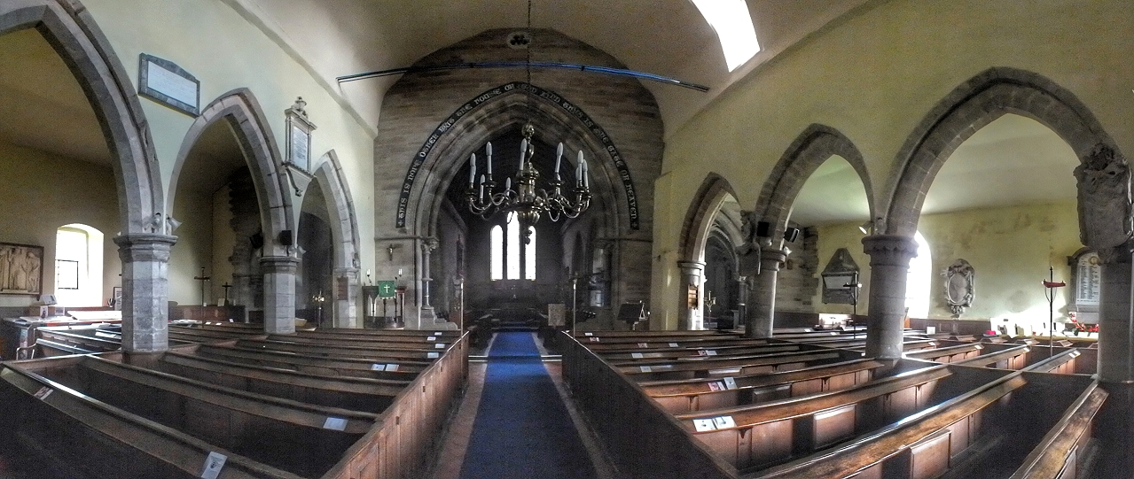 Die südlichen Arkaden (re.) der Kirche von Hanbury stammen noch aus dem Jahre 1210, die Kirchenbänke aus dem Jahre 1792 ... | |
