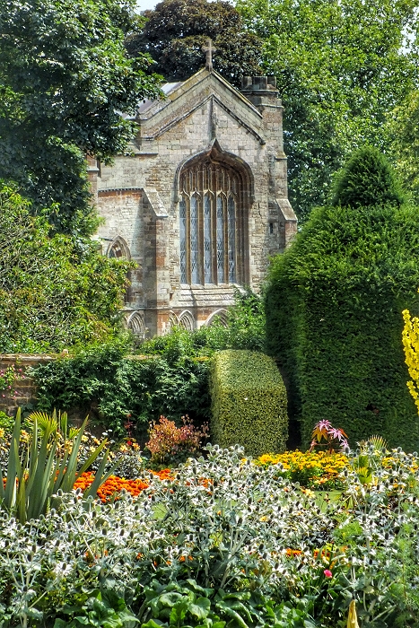 Blick vom Park von Canons Ashby auf die ehemalige Abteikirche ...