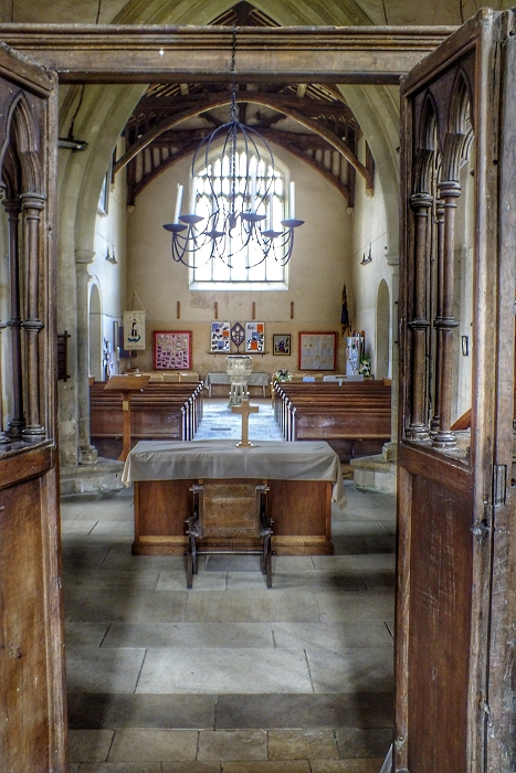Das Schiff von St Michael's in Stanton Harcourt (mit spätgotischem Westfenster) ist normannisch und somit der älteste Teil der Kirche ...