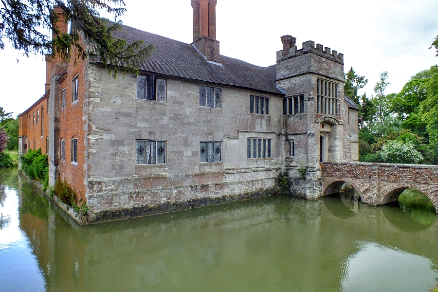 Das Manor von Baddesley Clinton ist wie eine mittelalterliche Burg von einem breiten Wassergraben umgeben ...