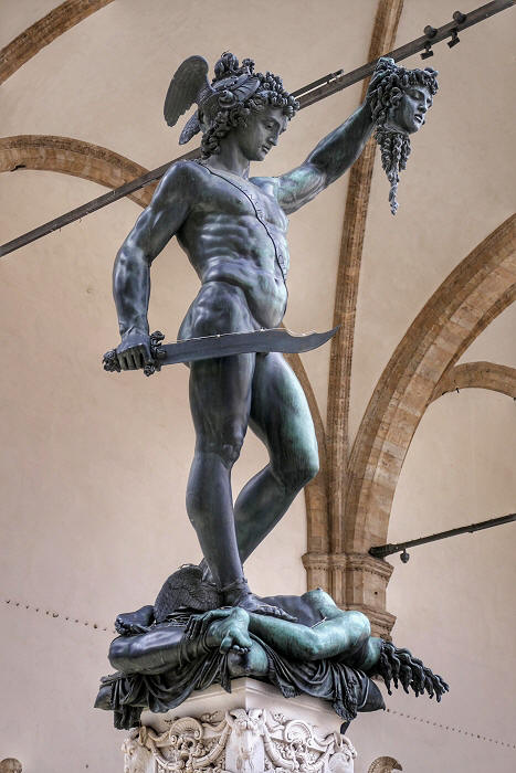 Loggia dei Lanzi, Florenz: Bronzeskulptur des Perseus mit dem Haupt der Medusa (Benvenuto Cellini, 1583) ...