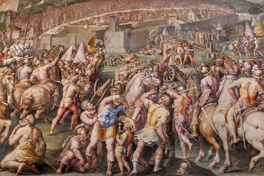 Palazzo Vecchio, Gemälde im 'Saal der Fünfhundert': Giorgio Vasari, Der 13-jährige Krieg mit Pisa ...