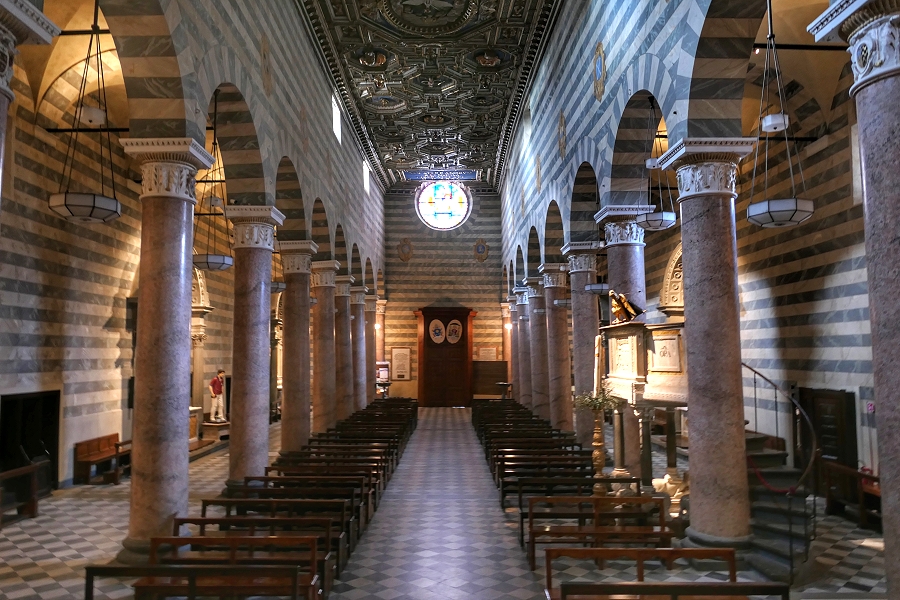 Volterra: Die ursprünglich mit Fresken geschmückten Wände der Längs- und Querschiffe in der Kathedrale Santa Maria Assunta wurden im 19. Jahrhundert mit Streifen übermalt ... | |