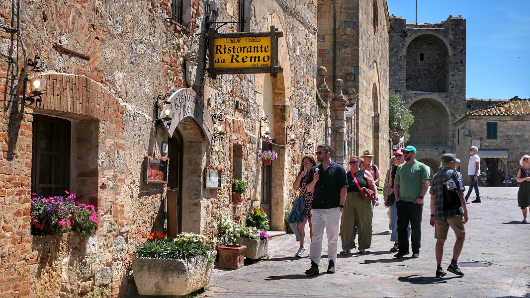 Die nur 200 m lange Via 1o Maggio ist die zentrale Achse des Wehrdorfes Monteriggioni ...