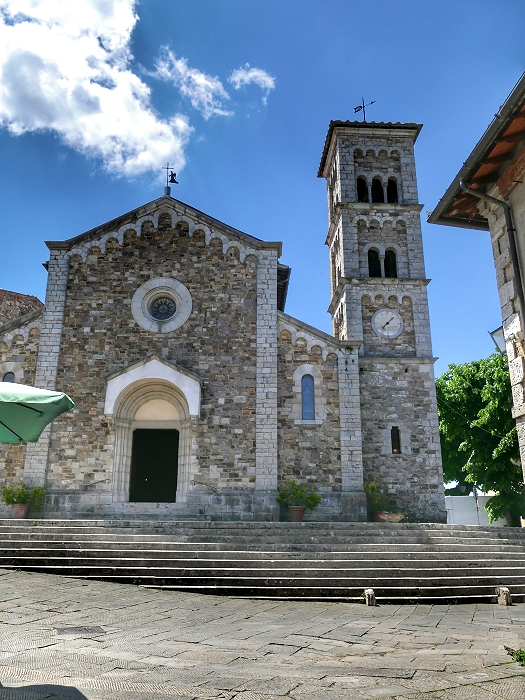 Die ursprünglich mittelalterliche Kirche San Salvatore im Ortskern von Castellina wurde im Zweiten Weltkrieg zerstört und danach im neoromanischen Stil wieder aufgebaut ...