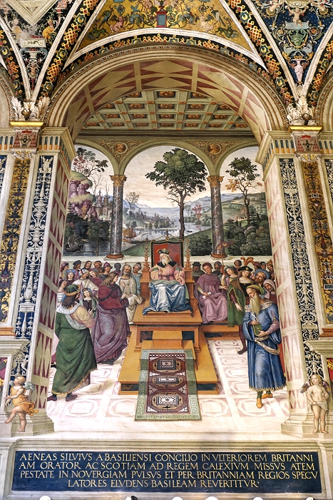 Piccolomini-Bibliothek, Dom von Siena: 'Enea Silvio Piccolomini als Gesandter des Konzils von Basel beim schottischen König James I.' ...