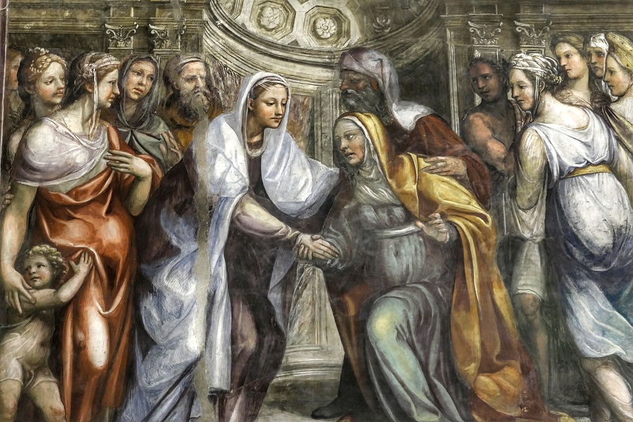 Oratorio San Bernardino, Siena: Fresko 'Mariä Heimsuchung', (Giovanni Antonio Bazzi, genannt 'Il Sodoma', 1477-1549) ...