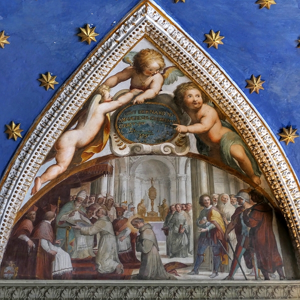 Fresko im Eingangsbereich des Oratorio San Bernardino, Siena ...