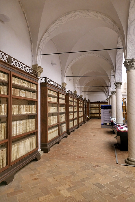 Abtei Monte Oliveto Maggiore: Die Bestände der Bibliothek umfassen mit beweglichen Lettern gedruckte Schriften, die zwischen der Gutenberg Bibel von 1454 und dem Jahr 1500 hergestellt wurden ...