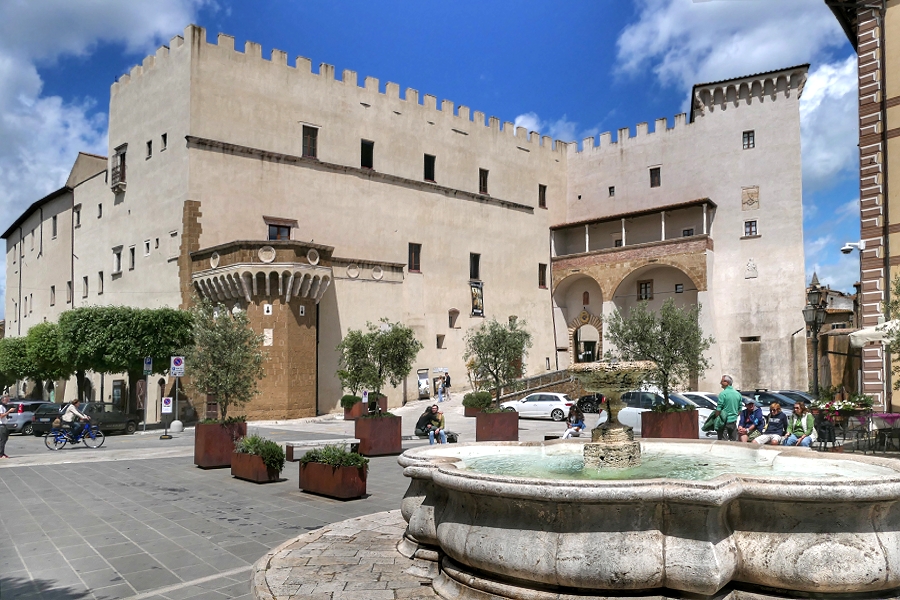 Palast der Grafen Orsini aus dem 14.-16. Jahrhundert an der Piazza Fortezza in Pitigliano ...
