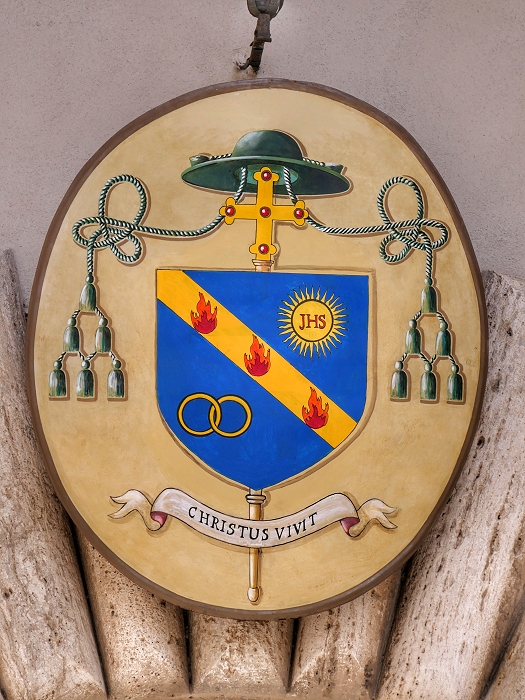 Das Wappen über dem Eingang zum Orsini-Palast dokumentiert die jahrhundertelange Verbindung von kirchlicher und weltlicher Macht ...