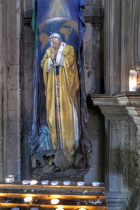 Skulptur des Papstes Johannes Paul II. (1920-2005) in der Kathedrale von Arezzo ...