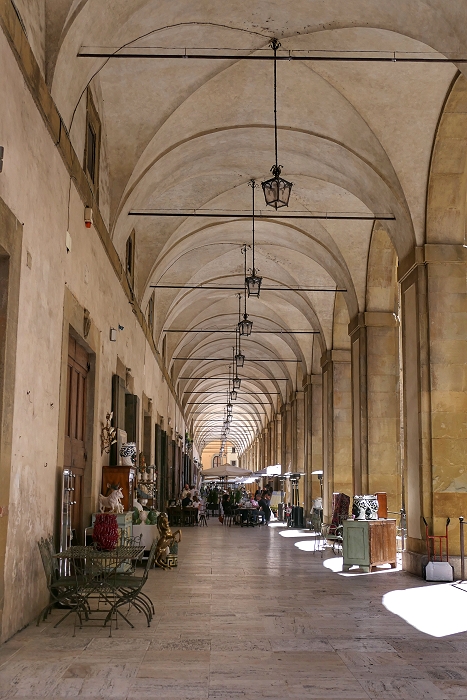 Arkaden des Palazzo delle Logge (16. Jhdt.) auf der Nordostseite der Piazza Grande in Arezzo ...