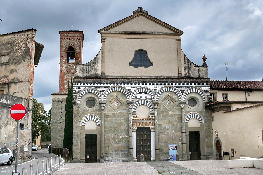 Pistoia: Romanische Basilika San Batolomeo in Pantano aus dem 12. Jahrhundert mit einer zeittypischen Schaufassade ...