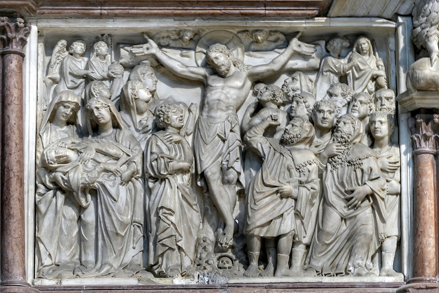 Baptisterium, Pisa: Reliefs an der Kanzelbrüstung mit Szenen aus dem Leben Jesu ...