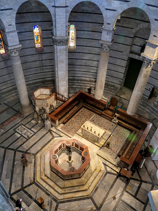 Beim Blick von der Galerie wird die enorme Höhe des Baptisteriums deutlich ...