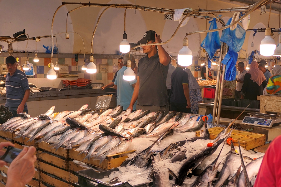 Abteilung für Fisch auf dem Zentralmarkt in Tunis ...