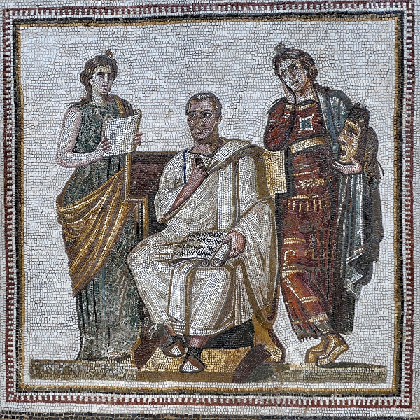 Das wohl berühmteste Ausstellungsstück des Bardo-Museums ist ein Mosaik aus dem frühen 3. Jahrhundert, auf dem der römische Dichter Virgil (70-19 v.Chr.) mit den Musen Calliope (Beredsamkeit) und Polymnia (Pantomime) dargestellt ist ... | |
