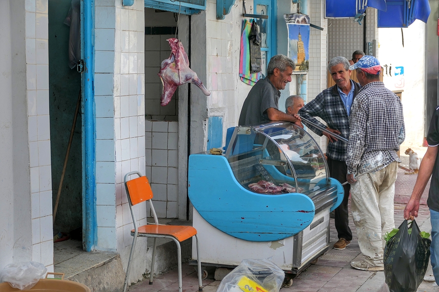 Schwätzchen unter Männern beim Metzger in Testour ...