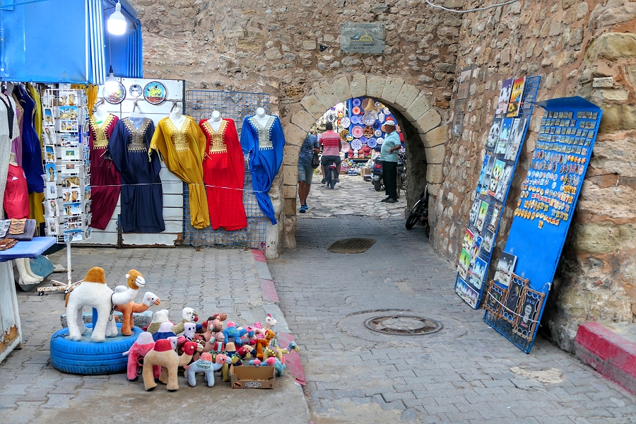 Schon am Zugang zur Medina von Hammamet wird deutlich, was den Besucher erwartet: Der boomende Tourismus hat dafür gesorgt, dass sich Souvenirshops und Restaurants in den engen Gassen breitgemacht haben ... | |