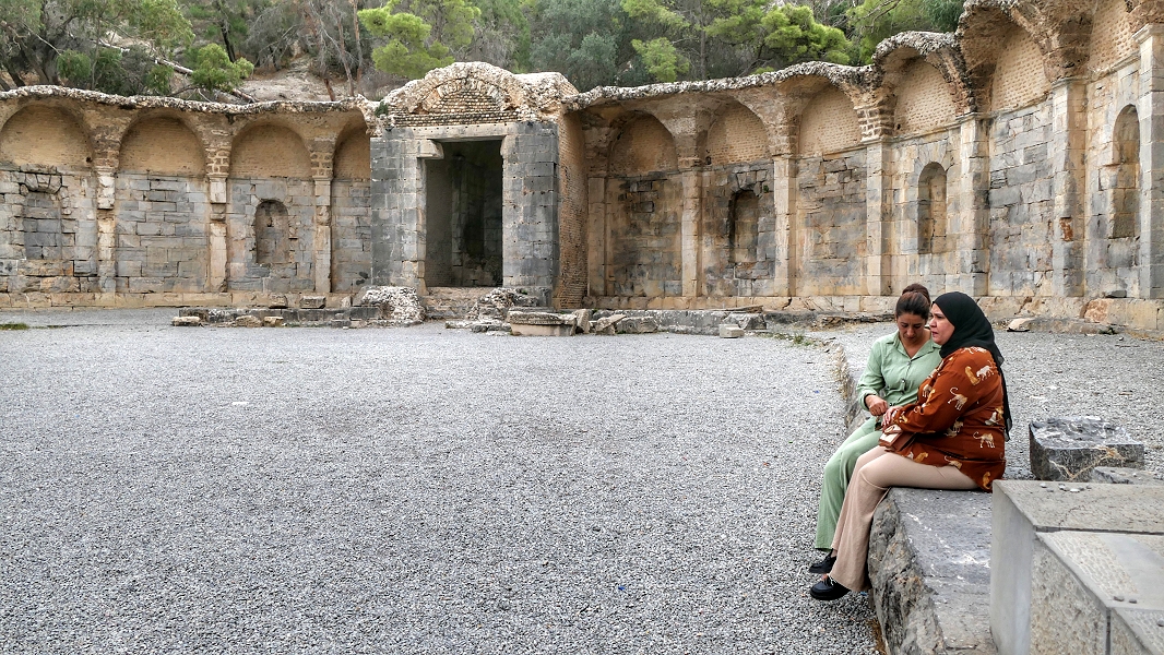 Zu beiden Seiten der Cella des Nymphäums befinden sich jeweils 6 Nischen, in denen die guten Wassergeister, die Nereiden, über das wertvolle Nass wachten ... | |